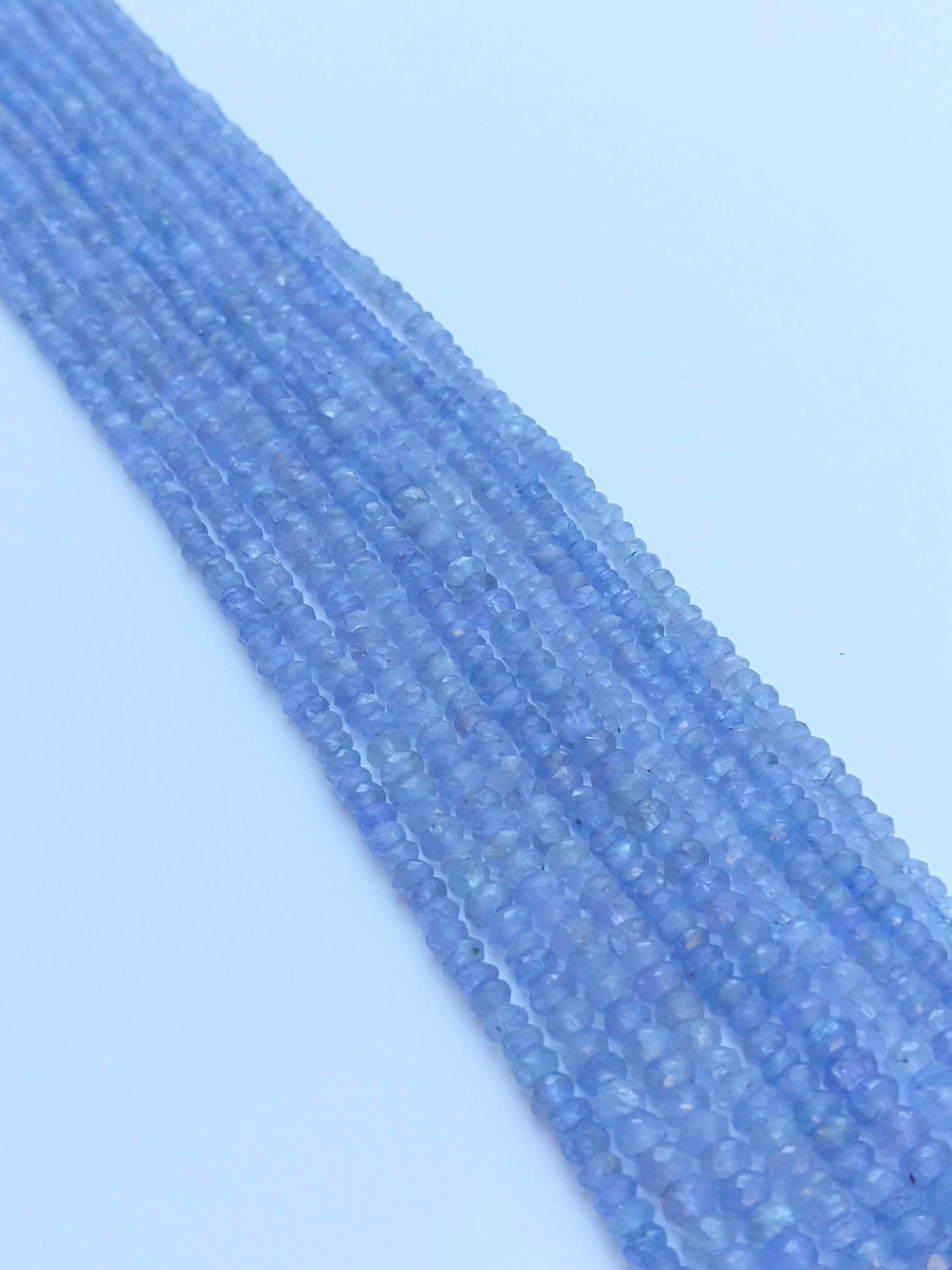 Tanzaniet wordt vaak verhit om de kleur te optimaliseren. Zo ook bij deze snoeren.